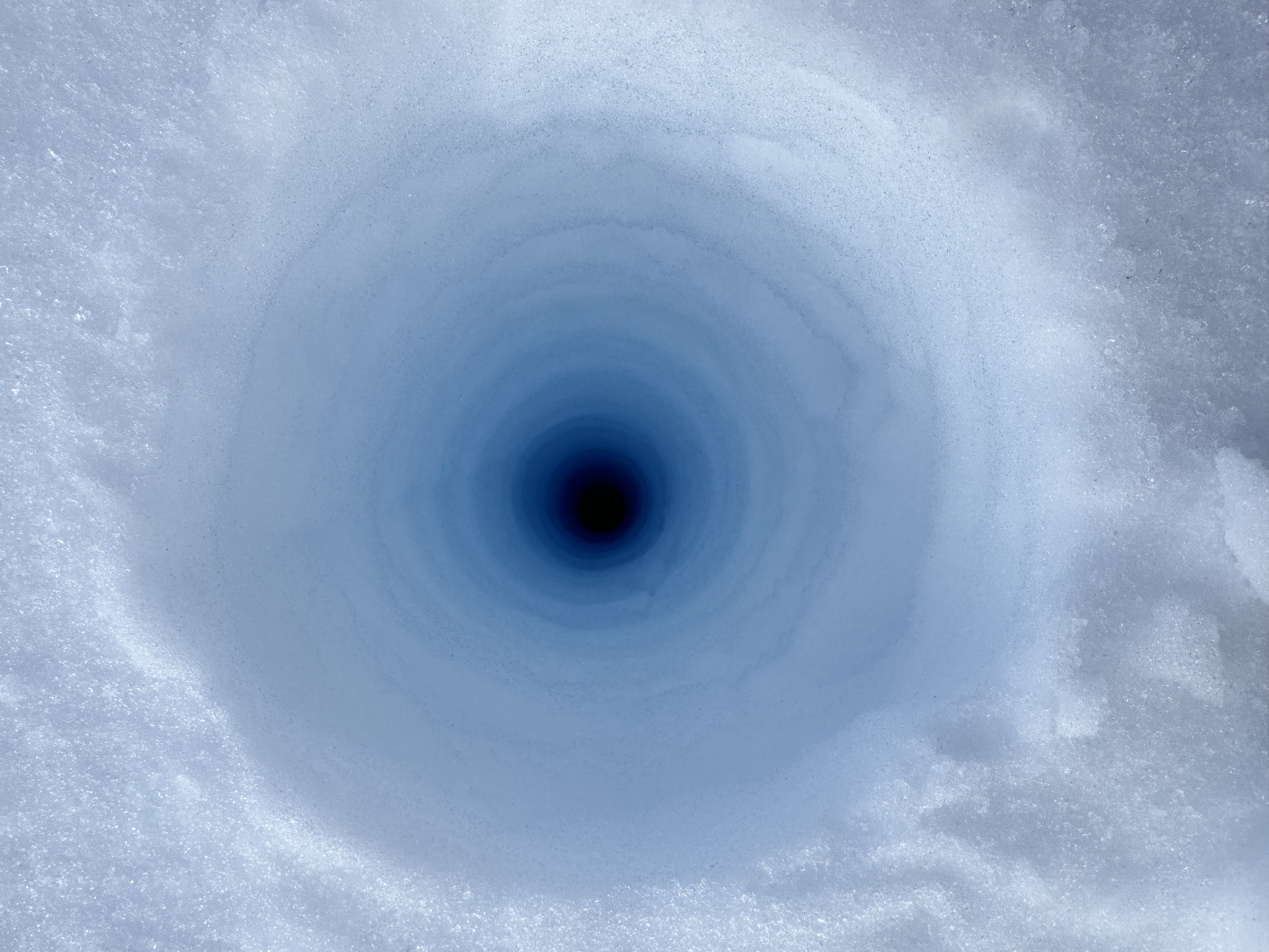 A view down inside a snow core borehole take near PEA.